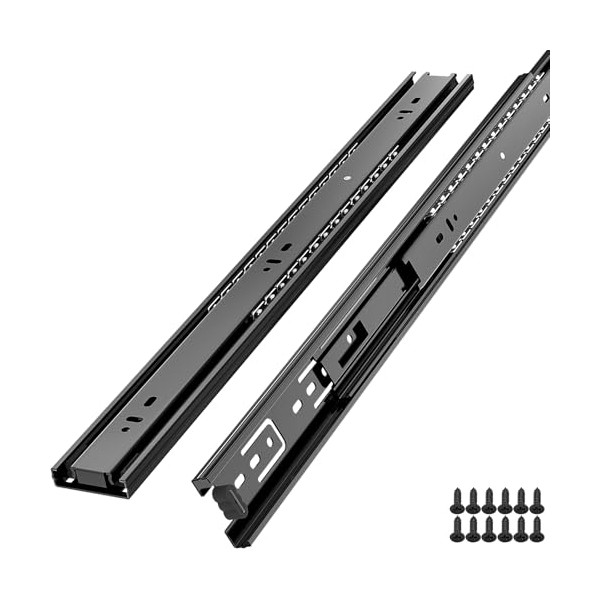 - 【High Load Capacity and Durability】 Crafted from 1.0mm thick cold-rolled steel, these heavy-duty drawer slides are twice as thick as standard slides, supporting up to 100 pounds—40 pounds more than typical slides. The full extension design allows the drawer to be pulled out completely, making it easy to access items. Whether you're looking for drawer tracks for kitchen cabinets, dressers, or office desks, these slides are the perfect choice.