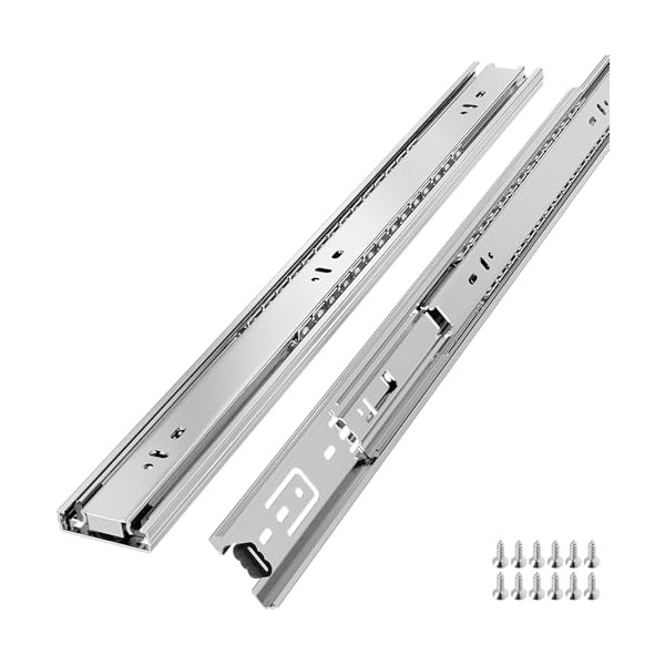 - 【High Load Capacity and Durability】 Crafted from 1.0mm thick cold-rolled steel, these heavy-duty drawer slides are twice as thick as standard slides, supporting up to 100 pounds—40 pounds more than typical slides. The full extension design allows the drawer to be pulled out completely, making it easy to access items. Whether you're looking for drawer tracks for kitchen cabinets, dressers, or office desks, these slides are the perfect choice.