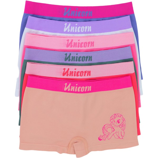 ToBeInStyle Girl's Pack of 6 Comfortable Seamless Stretch Unicorn Print Boyshorts - S
