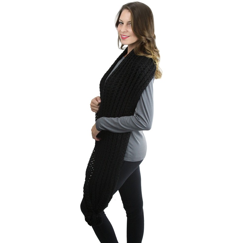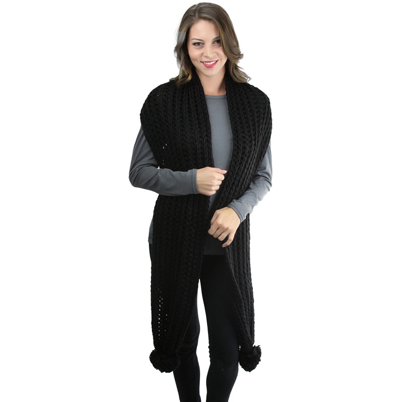 ToBeInStyle Women's Winter Super Warm Chunky Oversized Cozy Knit Scarves, Knitted Pom Pom - Black, One Size