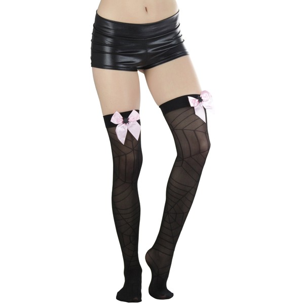 ToBeInStyleWomen's Spider Web Sheer Thigh Hi With Bow - Pinkblack