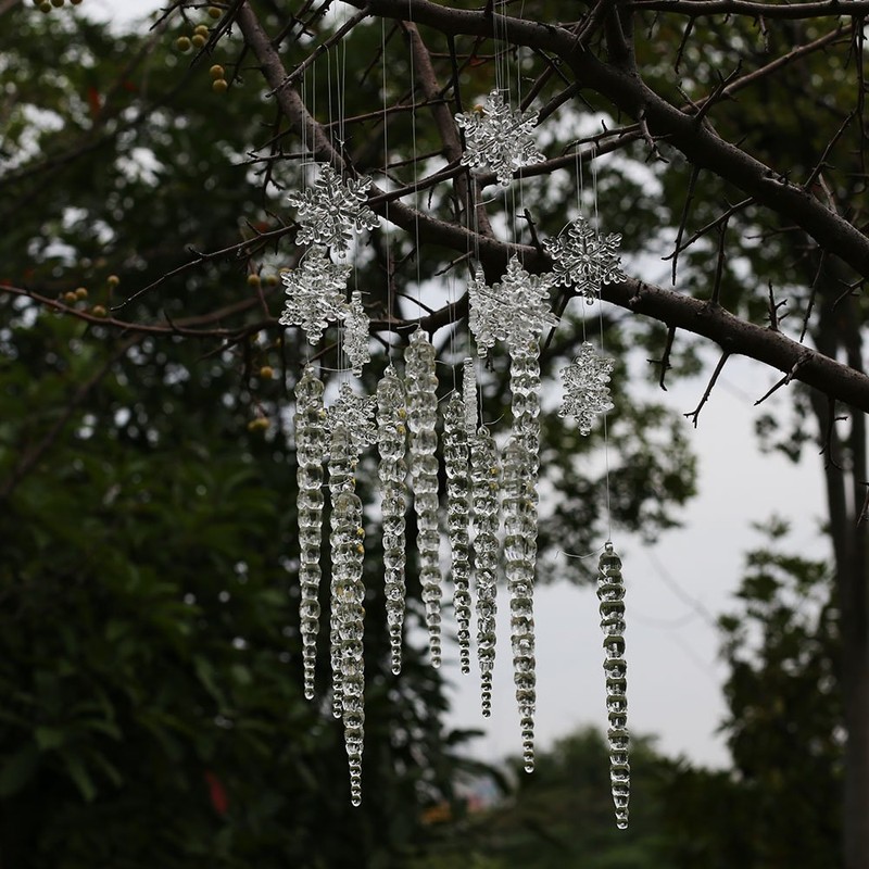 - ♥♥♥♥♥ Box contents: 10 pieces icicles, 10 pieces snowflakes and a roll of nylon thread.