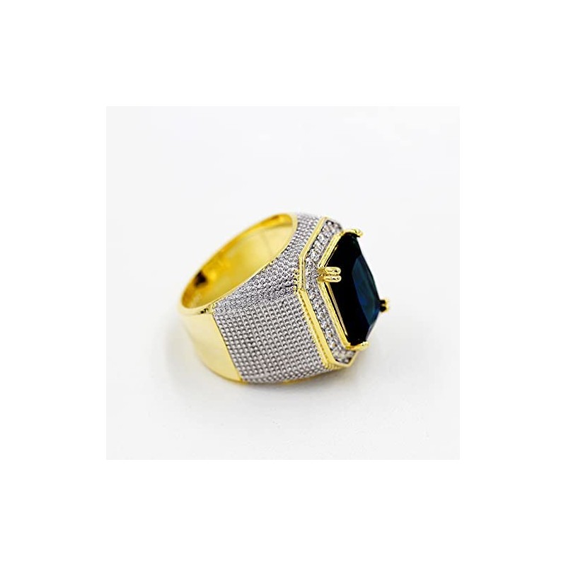 Tobestu Mens Large CZ Rectangular Wedding Band Ring Bling Ice Out Hip Hop Ring Birthday Gifts for Men RA408-2D (Blue,Size 7)