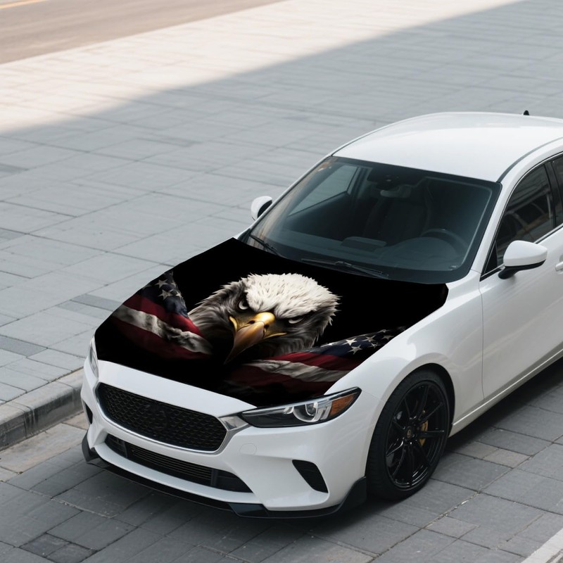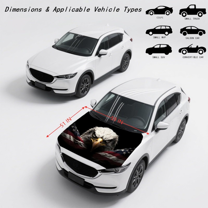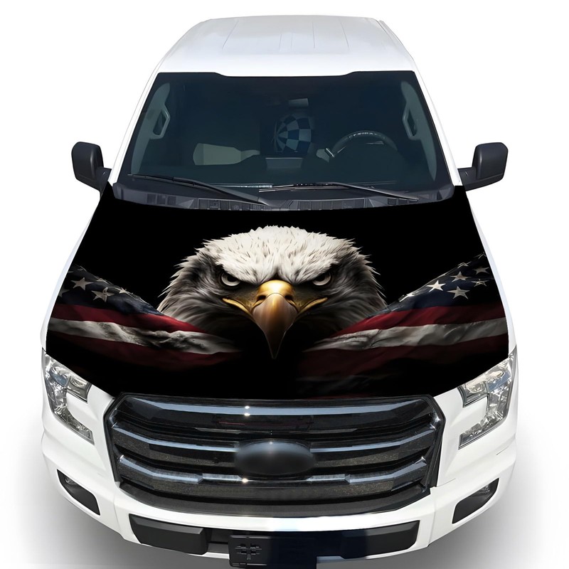 Tobethay American Car Hood Cover - 59x51 in Car Hood Cover Eagle Flag Bonnet Banner with 2 Adjustable Triangular Fasteners, Universal Fit for Trucks, SUV