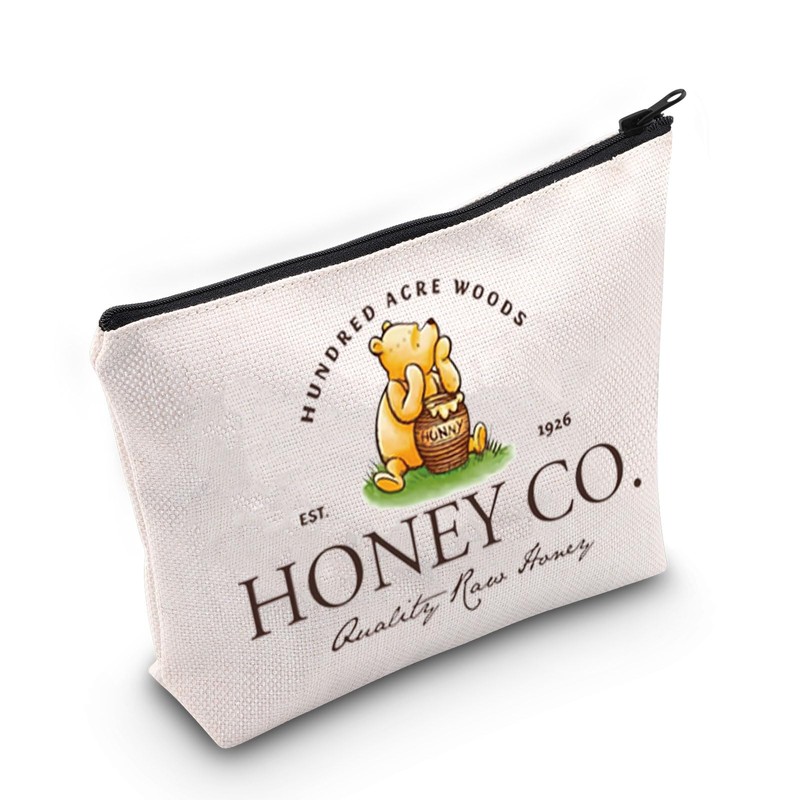 TOBGBE Pooh Bear Gifts clásico Hundred Acre Woods Honey Co - Bolsa de cosméticos con cierre, regalo para mujeres amantes de los perros, Blanco apagado, Cien Acre