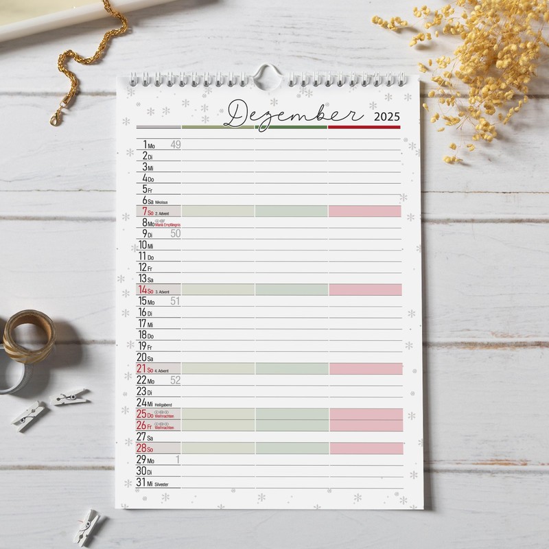 - Large format: the A4 calendar (30 x 21 cm) offers plenty of space for entries and ensures a clear overview. Calendar for two 2025