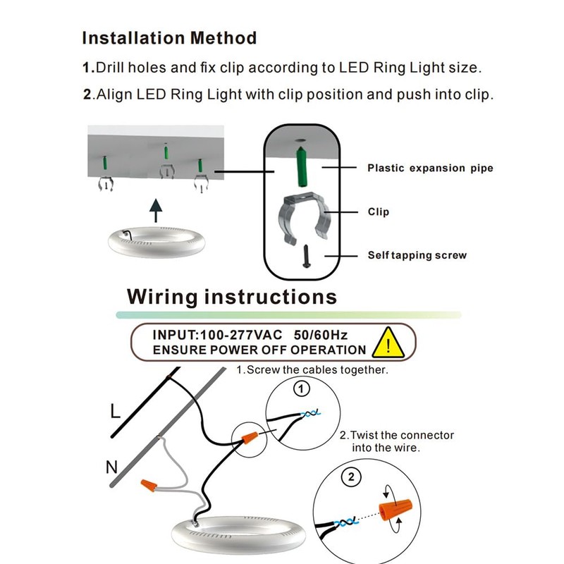 - Easy to use: The AC power is connected by 2 wires to replace the old circular fluorescent lamp (FC8T9). Comes with a quick connection cap to quickly connect the lights to the power cord. Support 100-277VAC input.