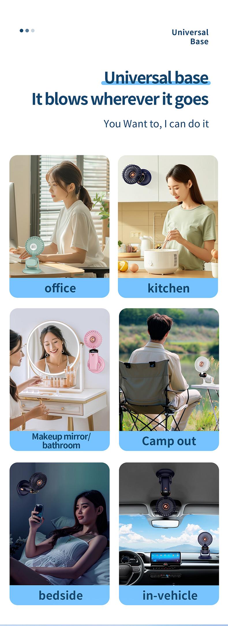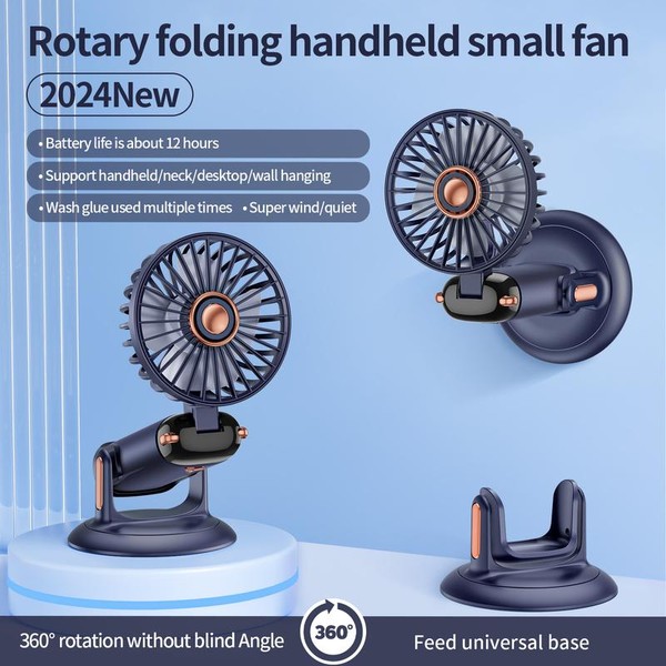TOBRBE Portable Handheld Fan, Battery Operated Fan with Base, 8 Hours, Digital Display, 5 Speeds, 90° Ajustable, Rechargeable Mini Fan for Outdoor Indoor cooling neck