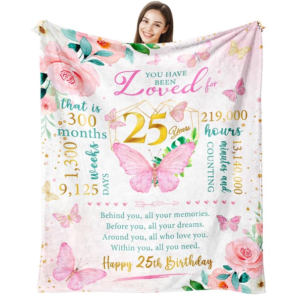 TOBUNKIEN Best Gift for 25 Year Old Female, Happy 25th Birthday Gifts for Women, 25 Year Old Birthday Gifts for Her, 25th Birthday Gift Ideas for Daughter Throw Blanket 60 X 50 Inch