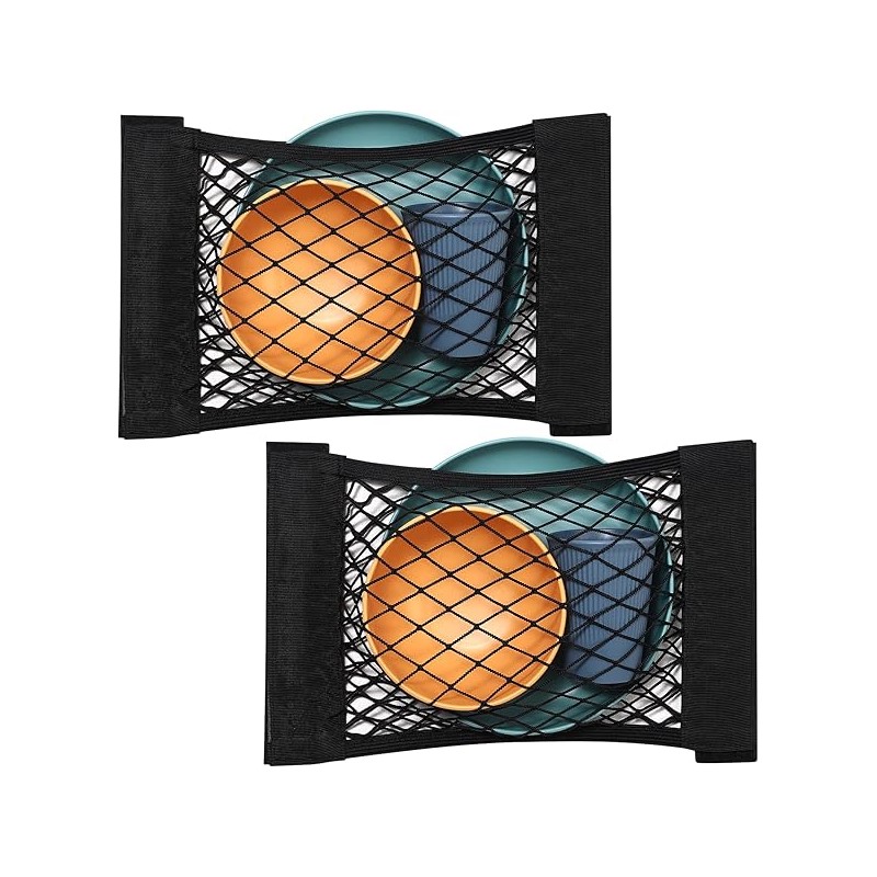 TOBWOLF 2PCS 25x40cm / 9.8x15.7in Universal Mesh Cargo Net with Tape Stickers, RV Storage Mesh Net, Elastic Car Storage Net RV Netting Pocket, Wall Sticker Add on Pouch Bag for RV, Car Trunk