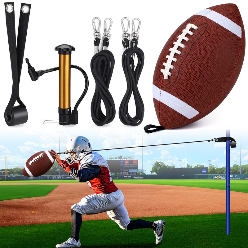 - 【Efficient Football Training】-- The football throw trainer is designed to maximize your practice sessions by providing an efficient way to improve your throwing and catching skills. With its innovative shock cable technology, this trainer extends up to 8+ feet upon being thrown, allowing you to practice without the hassle of chasing after the ball. Experience game-like practice as the football spirals directly back to you, helping you perfect your spiral pass.