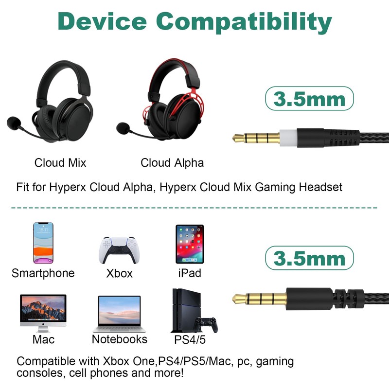 • CLOUD ALPHA AUDIO CABLE: 3.5mm TRRS audio cable compatible with Kingston HyperX Cloud Alpha, Cloud Mix, Cloud Flight, Logitech G633 G933 Gaming Headset.