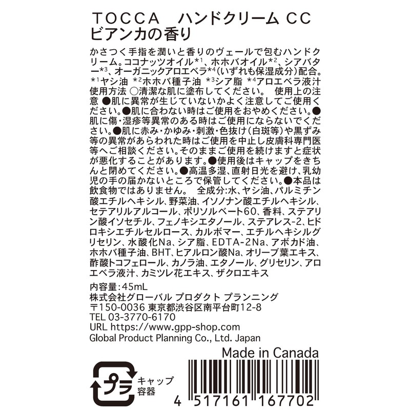 TOCCA Bianca Hand Cream, 1.5 fl oz (45 ml) (Moisturizing, Coconut Oil, Shea Butter)