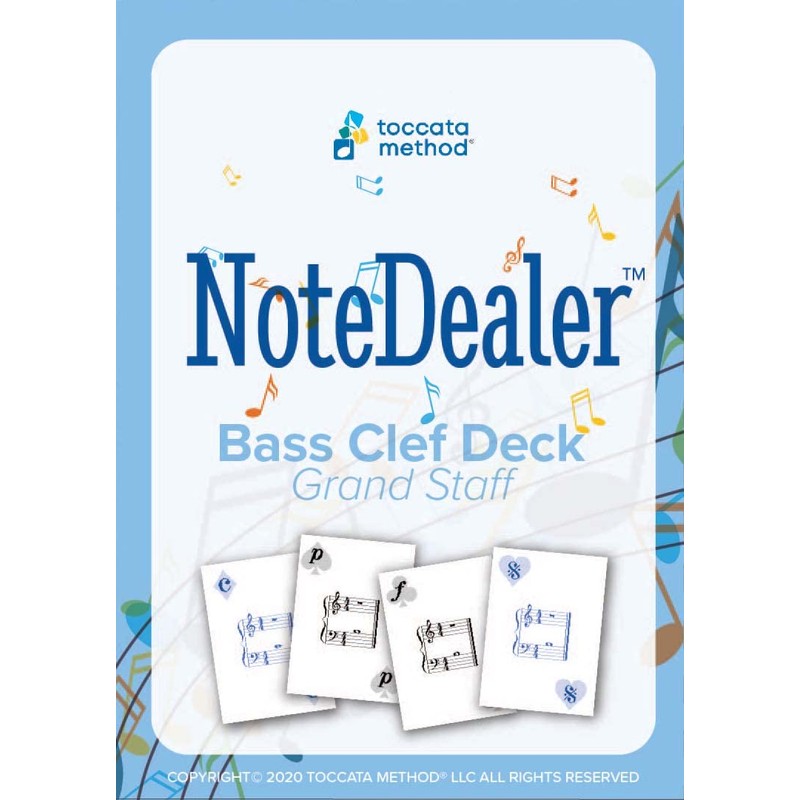 - Toccata Method NoteDealer Bass Clef Grand Staff Deck includes 52 playing cards with a full color illustrated instruction card