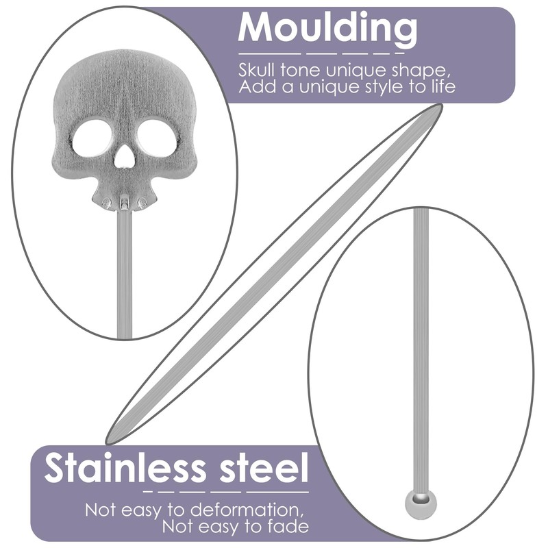 • Cocktail stick size: 8.66 x 1.18 x 0.16 inches (22 x 3 x 0.4 cm), Package Includes: A silver skull-headed cocktail bar x 6.