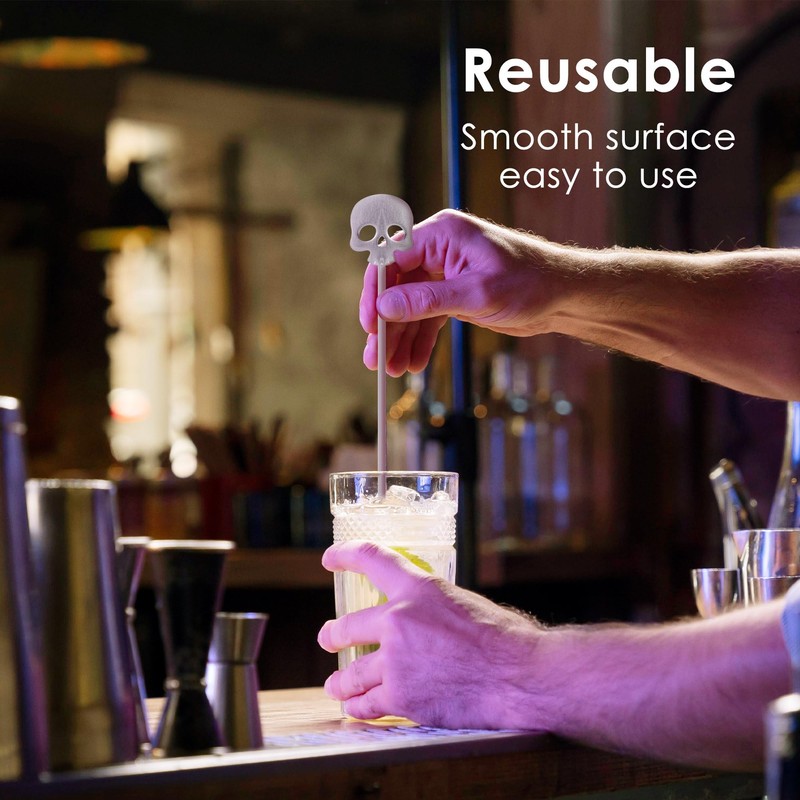 TOCCOOL Silver Skull Cocktail Stir Sticks - Reusable Stainless Steel Bar Stir...