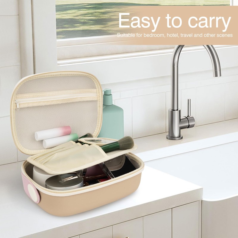 TOCCOOL Travel Makeup Bag, Portable EVA Material Makeup Storage Bag with Hand Strap, Large Capacity Cosmetic Bag for Women, Essential Organizer for Makeup with Compartment (Brown)