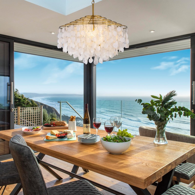 Capiz Shell Chandelier: The characteristic of this chandelier is a round layered frame and rich natural shells, The light becomes soft and warm through the shell. When the wind blows, the shells collide and make a jingling sound, making people enjoy it