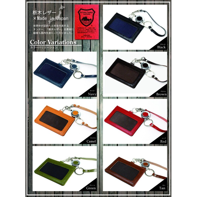 • Material: Cowhide leather (made in Japan); Size: Pass case: Width 3.9 inches (100 mm) x Height 2.8 inches (70 mm) x Thickness 0.2 inches (4 mm); Strap: Length 9.4 inches (240 mm); Reel key: Extends to 23.6 inches (60 cm). Specifications: Card pocket x 1, window card pocket x 1