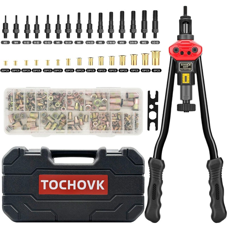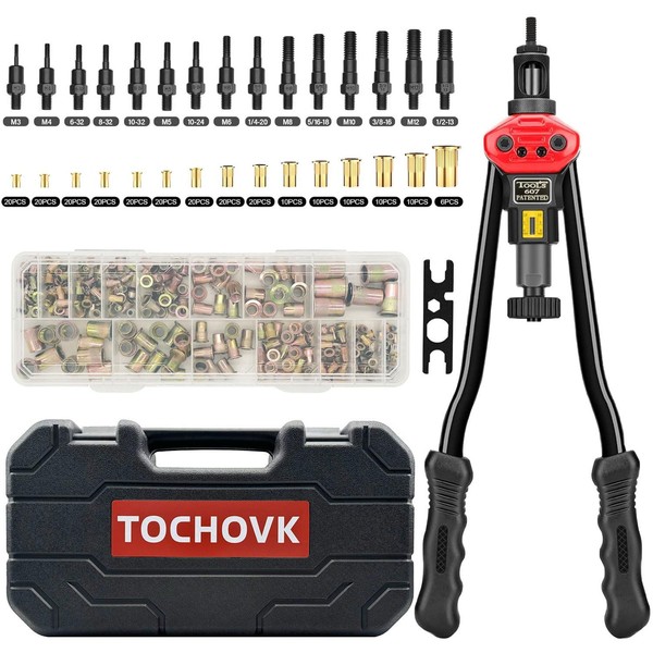 TOCHOVK 16-Inch Rivnut Tool Kit with 15 Metric and SAE Mandrels, 236Pcs Rivet nut Assortment Kit,Sturdy Plastic Case