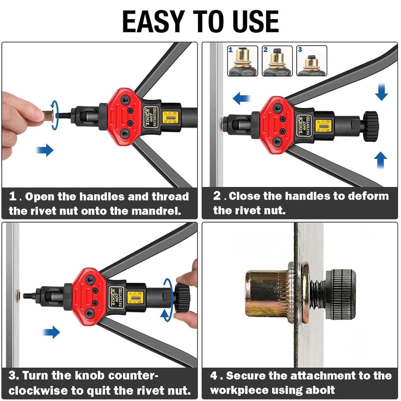 - SATISFACTION & WARRANTY GUARANTEED - We back all hand rivet nut tool with 30 days Money-back and 2-Year Guarantee for your satisfaction. If you meet with any problem, please email us with your order number, we will offer efficient customer support at earliest