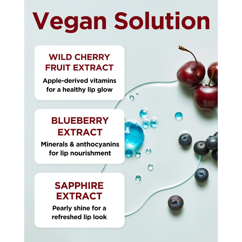 - NUTRIENT-RICH BERRY & BOTANICAL INGREDIENTS: Contains black cherry and blueberry extracts to nourish and revitalize, while sapphire extract adds a luminous pearl-like glow. Olive, apricot kernel, camellia seed, evening primrose, and argan oils provide deep hydration and care for healthy-looking lips.