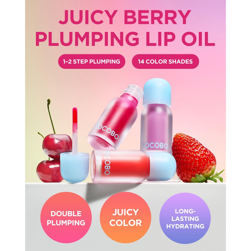 TOCOBO Juicy Berry Plumping Lip Oil 18 Cozy Pink – Korean Vegan Hydrating Lip Oil with Plant Oils for High Shine Gloss - Non Sticky Formula for All Skin Tones, 0.12 fl.oz.