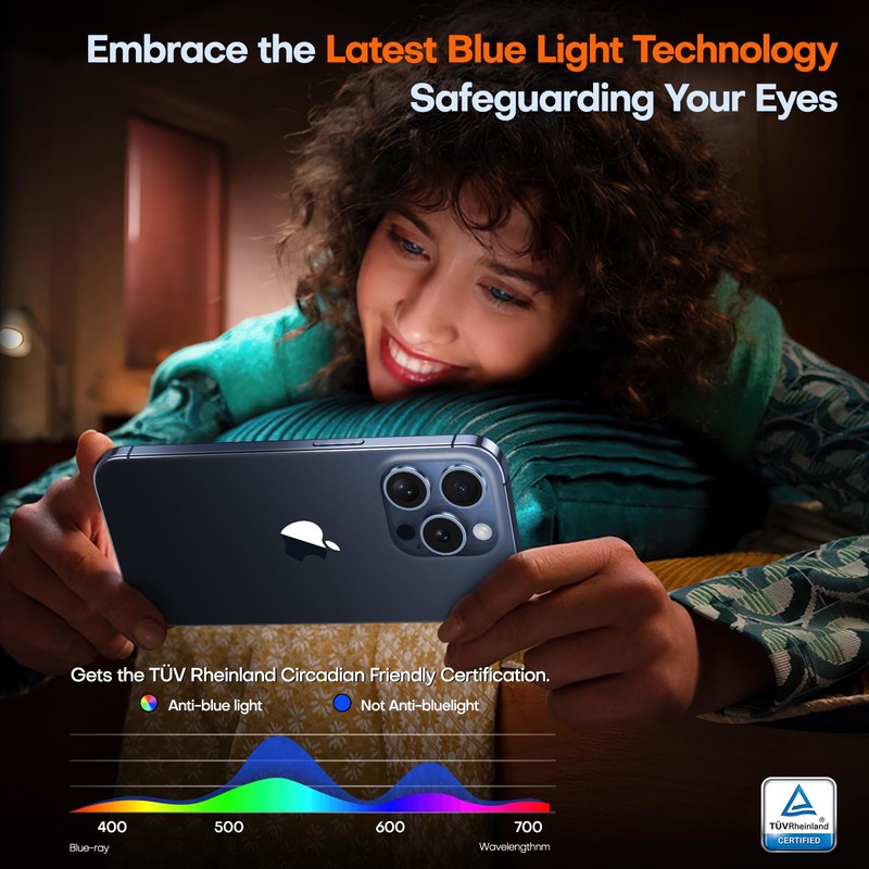 - HD Transparent Eye ProtectionMade of optical-grade high-transparency material that faithfully reproduces the best visual feast brought by the iPhone screen. Additionally, professional blue light filtering technology is incorporated to create a more relaxed and comfortable viewing experience.