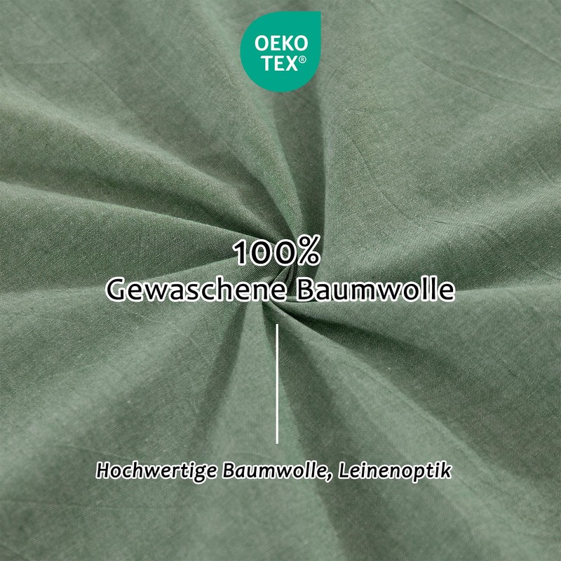 TOCOMOA Cushion Cover 40 x 60 cm Set of 2 - 100% Washed Cotton Cushion Covers Oeko-Tex Certified, Linen Look and Breathable Cushion Slip, Green Pillowcase with Zip