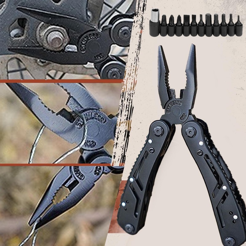 - 🔧【MULTIHERRAMIENTA ALICATES CON 24 CARACTERISTICAS】Esta multiherramienta alicates adoptado diseño de 24 en 1 para satisfacer las diferentes necesidades de: 11 brocas con conector magnético, lata y abrebotellas, lima de metal, Alicates con resorte, cortador de alambre y pelacables, cuchillo de sierra plegable y cuchilla principal, destornilladores, hery es un punzón multiherramienta. Es una perfecta familia de herramientas multiusos.