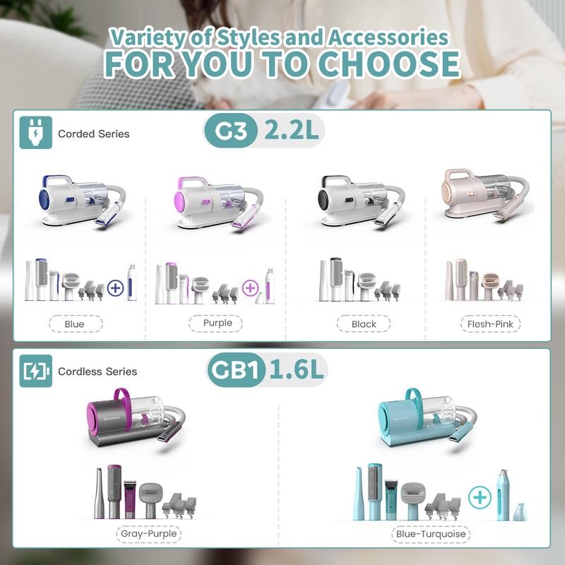 Today's Deals - Geoorood Dog Grooming Vacuum All-in-One Kit with 10KPa Suction, 2.2L Dust Tank, Adjustable Combs, Lightweight Design, Perfect for Gifts & Home Use #TikTokShopLaborDaySale #FallFreshness:_Purple(5-in-1)-with Nail Grinder