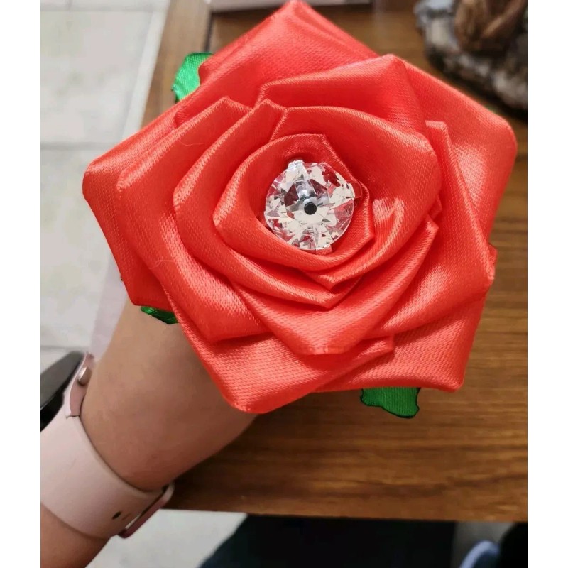 Beautiful handmade flower made with ribbon, black ink, and can come with any color. The last picture is for size reference.