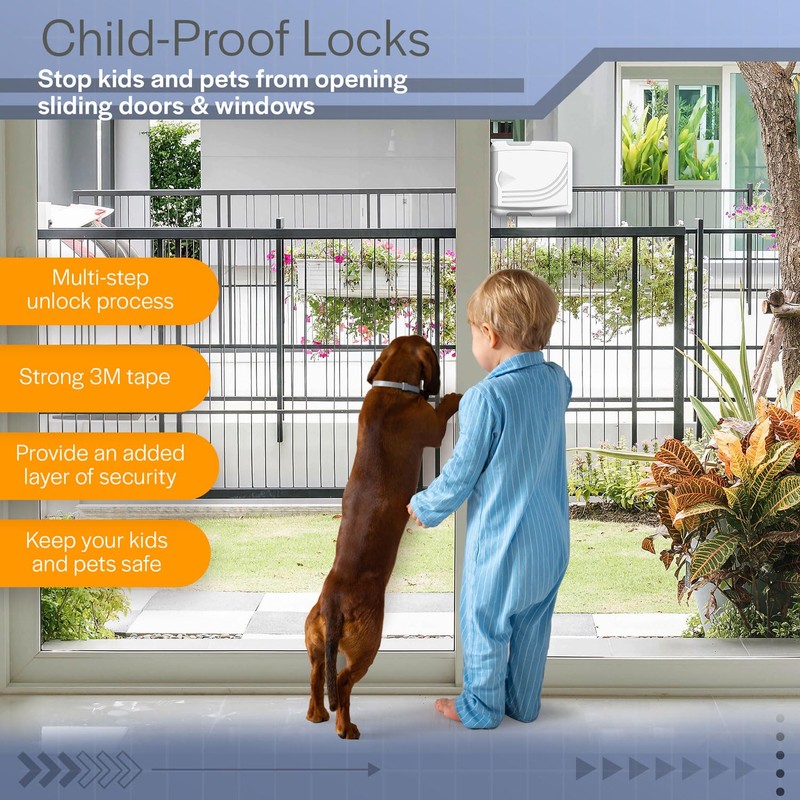 - Kid-Proof Sliding Window Locks - Our sliding glass door security lock has a robust grip and multi-step unlock process, creating a nearly impenetrable barrier for children.