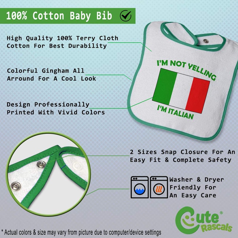 Toddler & Baby Bibs Burp Cloths Not Yelling I'm Not Yelling I Am Italian Italy Countries Cotton Baby Items for Baby Girl & Boy White Green Design Only