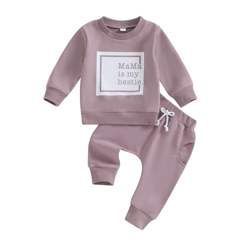 Toddler Baby Girl Clothes Long Sleeve Letter Print Sweatshirt and Stretch Jogger Pants Newborn Fall Winter Outfit (Mama is My Bestie Purple, 12-18 Months)
