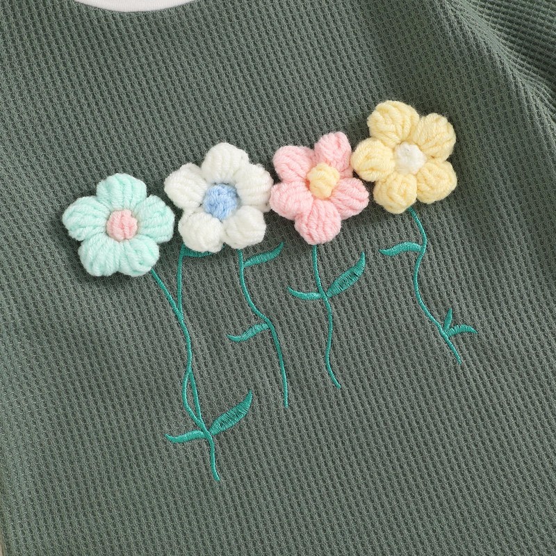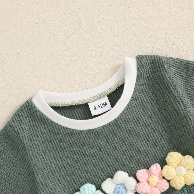 Toddler Baby Girl Summer Clothes Infant 3D Flower T Shirt Shorts Clothing Set Spring Cute Newborn Waffle Outfits (A 3D Embroidery Flower Green, 3-4T)