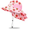 - SAFETY RELEASE CHIN STRAP: The toddler bucket hat has a chin strap to keep it stay on baby head when they are playing or in wind. Great for little girls and boys playing at the play ground. Definitely an idea gift to your child, niece, granddaughter or grandson on birthday, summer holiday or festival