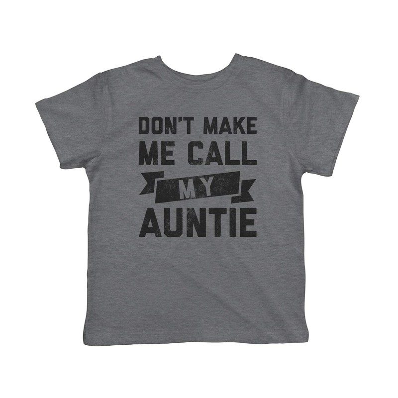 Don't make me call my auntie because then I'll get extremely spoiled! **Don't Sacrifice Comfort** At Crazy Dog T shirts, we’ve combined what every parent loves in a toddler graphic t shirt: a comfortable fit and funny jokes or cute images. These silly, cheap shirts are made with super soft cotton and top of the line screen printed ink that stays vibrant and look great. Our cool and adorable tops for little kids are great for summer, daycare or playing on the playground. Our tshirts will help your son and daughter look stylish, feel comfortable and be funny all at the same time! They're great gifts ideas for a kiddo (or a mom or dad!) with a great sense of humor. **Your Kid's New Favorite T-shirt** The ultra soft cotton tees let your little ones look great watching cartoons at home or chillin at the park. Our experts have harvested the finest jokes, quotes and cute images guaranteed to get a smile. We print all our novelty tees and tank tops in-house with state of the art equipment so your shirt is made to last and will look awesome on your niece, nephew, daughter, son, granddaughter or grandson. It makes a great gift for all occasions! ** **Crazy Dog Tshirts Aren’t Just for Kids** Our toddler funny shirts make ideal Christmas, birthday, first day of school, Easter, St Patrick's Day and Halloween presents. We also have tshirts the whole family from small to plus size so anyone can enjoy! Wear matching tees for yearly photos or family reunions. Our tees are just as much fun to give as a gift than they are to receive. Do the math and get a look from a retro video game Tshirt to a present for your little fashionista. **If You’re Not Happy, it’s No Joke** We love throwing humor at your face, but if there’s an issue with your purchase, we want to make it right. Contact us if you have any problems and leave us your feedback if you're happy with your purchase. Customer satisfaction is our top priority. **