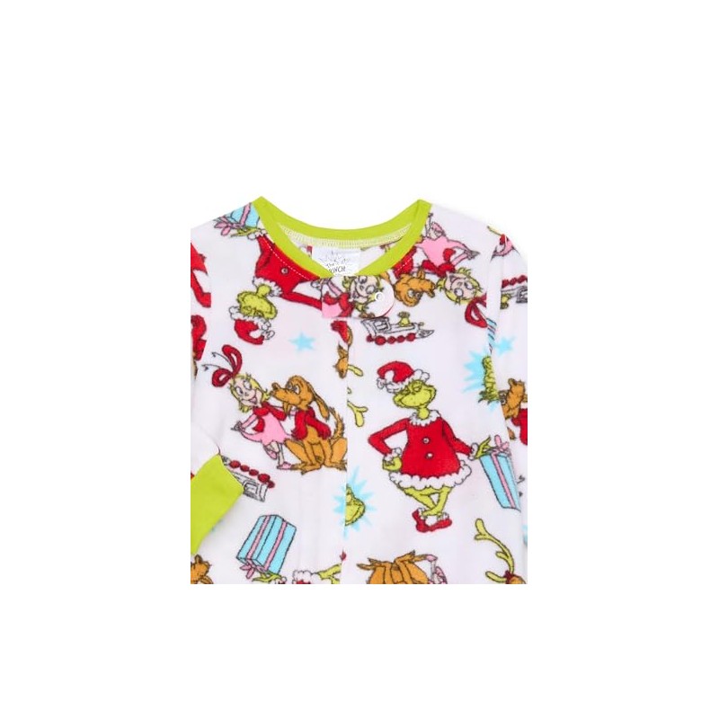 Toddler Grinch, Cindy Lou and Max Christmas Character Fleece One-Piece Footed Sleeper, 5T White