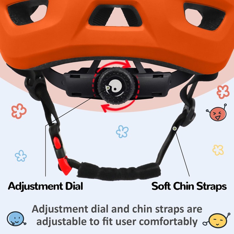 Crank adjustment dial in the back of the helmet and chin straps are adjustable to fit user comfortably from 360-degree. The chin straps are soft, no more worries about that the straps may scratch child's sensitive skin. Straps buckle is easy to fasten and release.