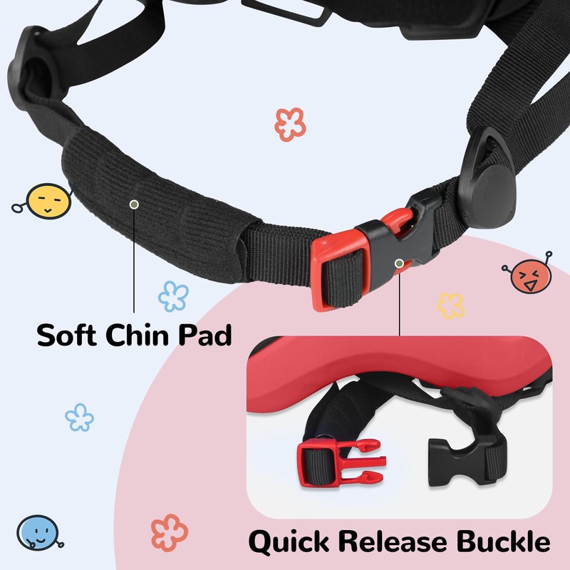 Crank adjustment dial in the back of the helmet and chin straps are adjustable to fit user comfortably from 360-degree. The chin straps are soft, no more worries about that the straps may scratch child's sensitive skin. Straps buckle is easy to fasten and release.