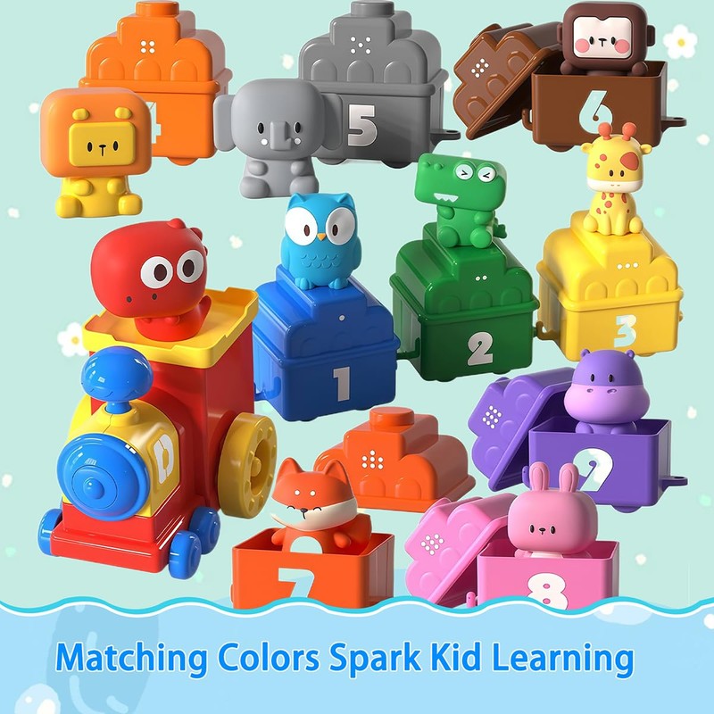 Toddler Learning Toys 1 2 3 Years Old, Counting, Matching & Sorting Montessori Learning Train Including 10 Animals, Easter Christmas Birthday Gift for Baby Boys and Girls