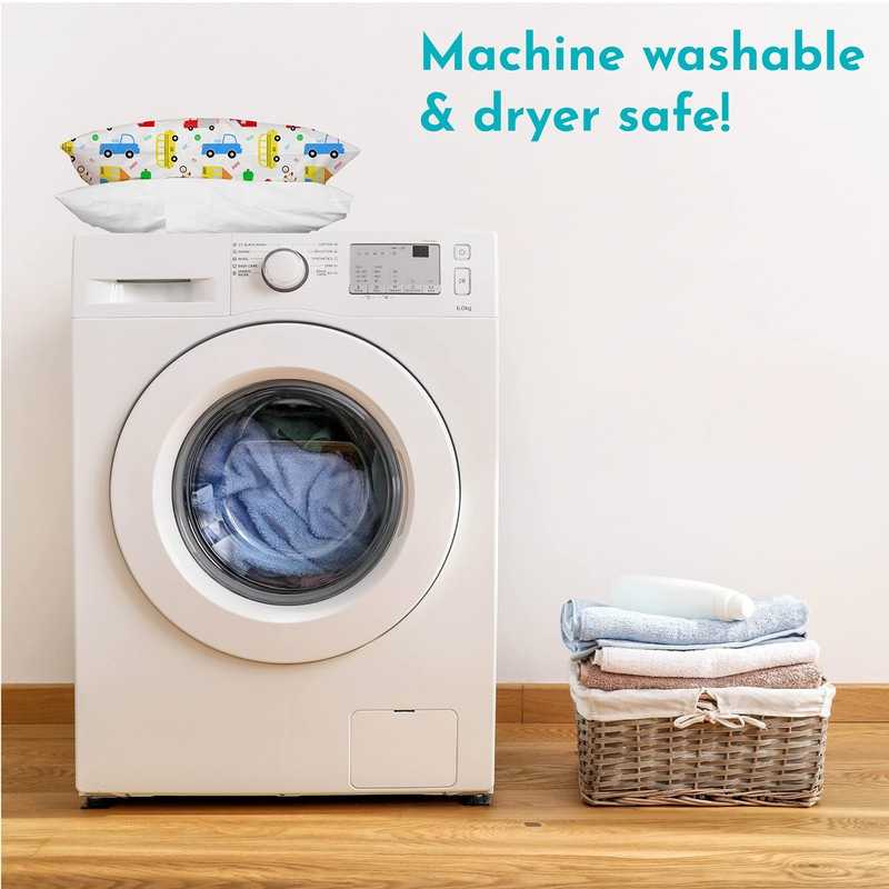 - THE TODDLER PILLOWCASE is made with 100% cotton and fits the pillow snugly. It is made with an envelope enclosure, is also machine washable, and get's softer with each wash!