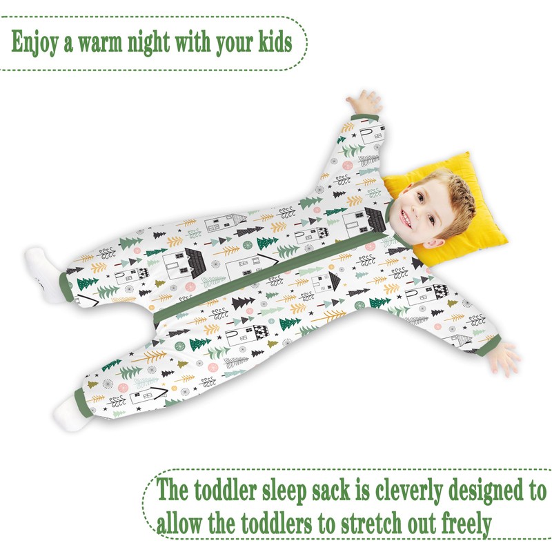 Toddler Sleep Sack With Feet - Winter Long Sleeve 2.5Tog Wearable Blanket for Early Walkers (Green Forest, 5T-7T)