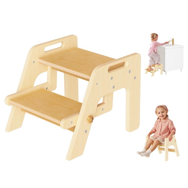 Toddler Step Stool, 2 in 1 Kids Step Stool with Safety Non-Slip Pads and Handles, Wooden Potty Training Stool, Kids Stools Toddler Stool for Bathroom Sink, Kitchen, Bedroom, Nursery, Natural