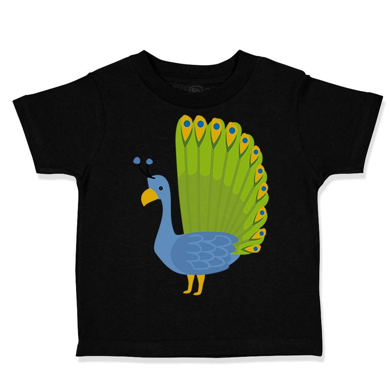 Toddler T-Shirt Zoo Peacock Spread Tail Zoo Funny Cotton Colorful Peacock Boy & Girl Clothes Zoo Baby Funny Tee Black Design Only 5 6T