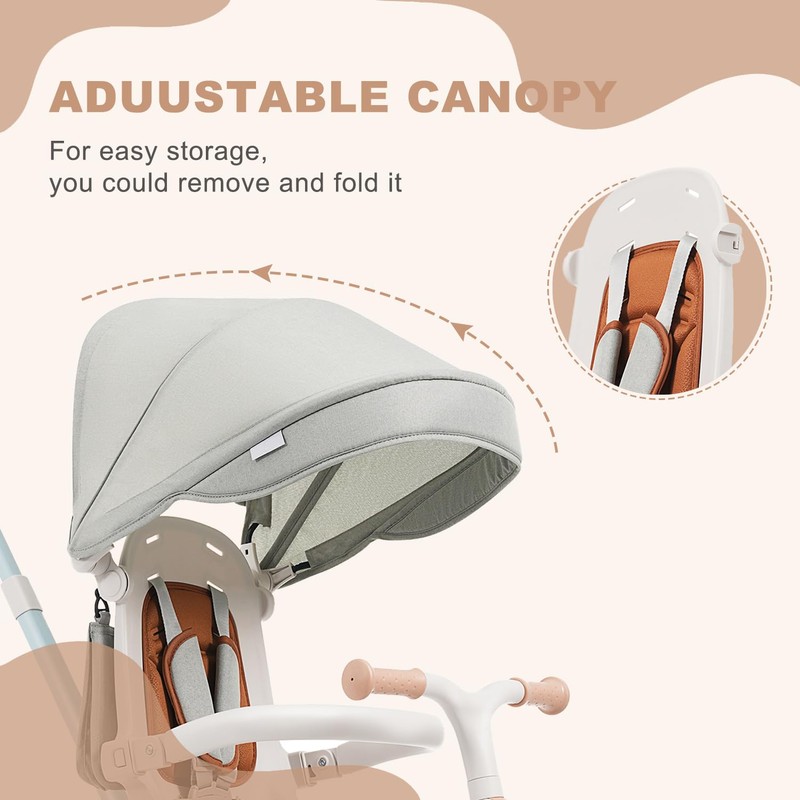 - 👶【Durable & Safe】: Built with a sturdy aluminum frame, this kid's tricycle supports up to 50 lbs. It features a secure 3-point safety harness to prevent slipping or tipping, ensuring your child's safety. The adjustable canopy offers multi-level deployment, protecting your little one from sun exposure and adapting to various outdoor weather conditions.