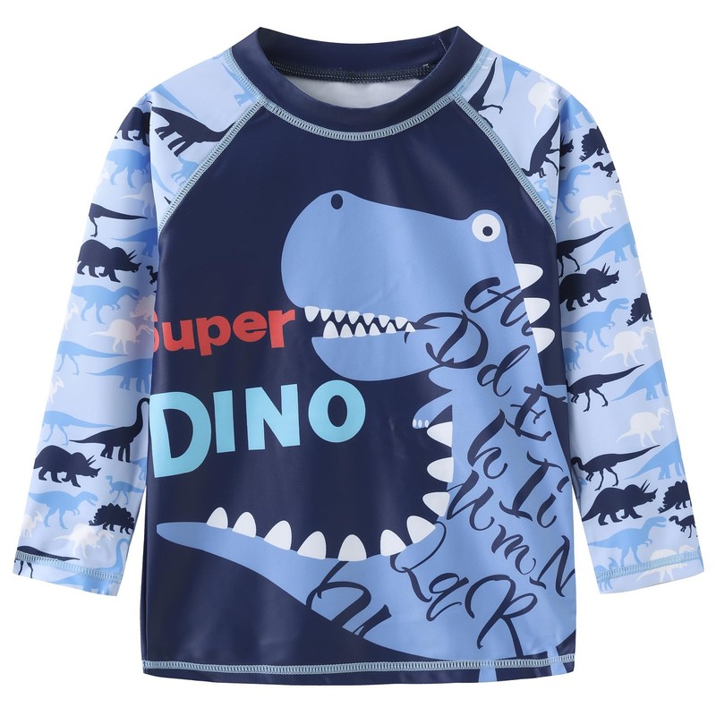 Toddlers and Baby Boys' 3-Piece Rashguard Sets Swimsuits Sets with Hat Surfing Swimwear Sunsuit UPF 50+, Light Blue Super Dino, 5-6 Years