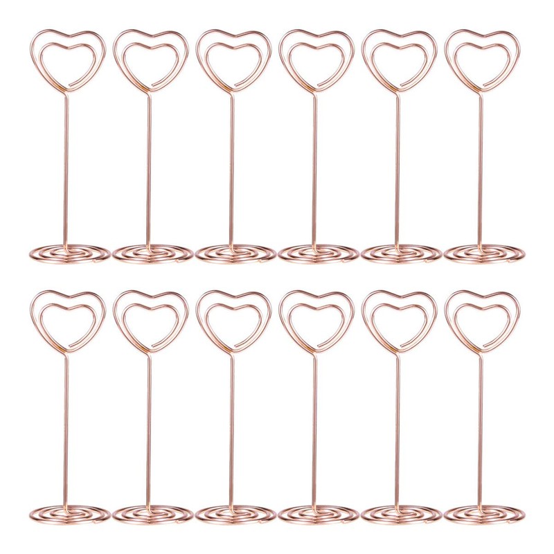 Toddmomy 12 Pcs Heart Photo Holder Place Holders Table Number Stands Picture Holder for Wedding Party Sign Food Cards Label,Rose Gold