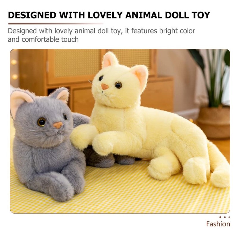 - 🐱【Realistic Cat】Super lovely plush doll toy, very lovely and funny, also, good desktop decor. This adorable cat doll can be to decorate your home, living room, kids room.